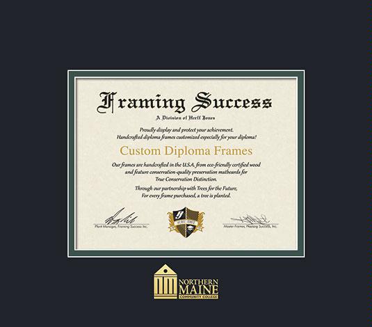 Northern Maine Community College Diploma Frame with Black and Green Double Mat and Gold Embossing