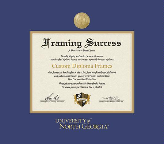 University of North Georgia Diploma (10/21 to 7/25) Frame with Medallion and Blue and Gold Double Mat and Gold Embossing