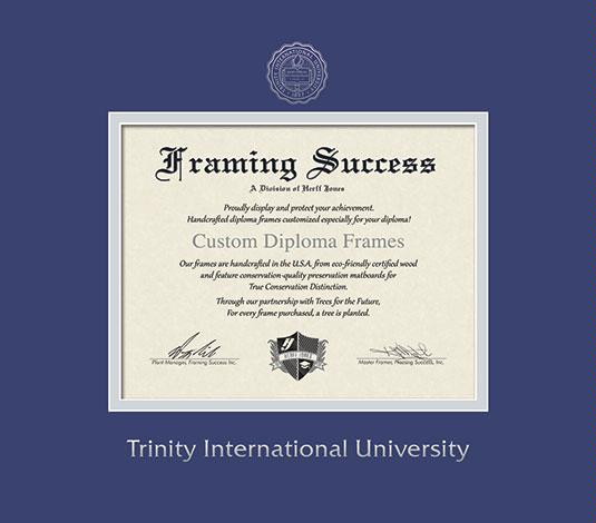 Trinity International University Diploma - BA/MA/PhD Frame with Royal Blue and Silver Double Mat and Silver Embossing