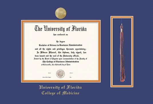 University of Florida Diploma - MD Frame with Medallion and Tassel Cut-out and Royal Blue and Orange Double Mat and Gold Embossing