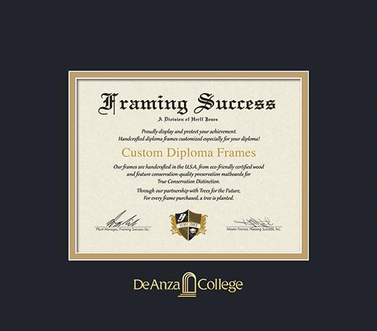 De Anza College Diploma Frame with Black and Gold Double Mat and Gold Embossing