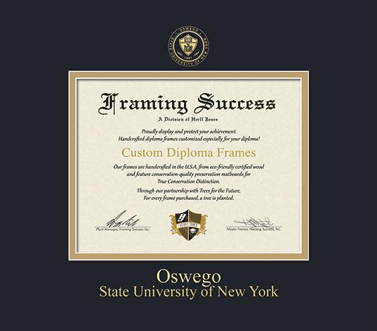 SUNY Oswego Diploma Frame with Black and Gold Double Mat and Gold Embossing