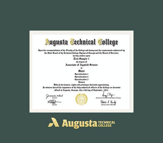 Augusta Technical College Diploma (2022 to Present) Frame with Green and Cream Double Mat and Gold Embossing