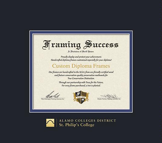 St. Philip's College Diploma Frame with Black and Royal Blue Double Mat and Gold Embossing