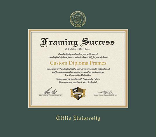 Tiffin University Diploma - Doctorate Frame with Green and Gold Double Mat and Gold Embossing