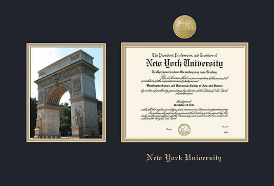 New York University Diploma (4/22 to Present) and Photo Frame with Medallion and Black and Gold Double Mat and Gold Embossing