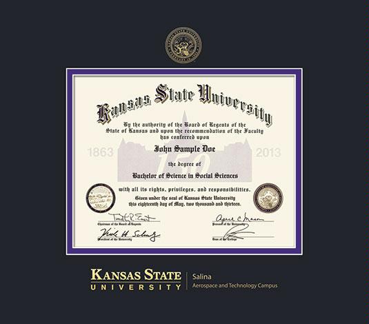 Kansas State University-Salina Diploma Frame with Black and Purple Double Mat and Gold Embossing