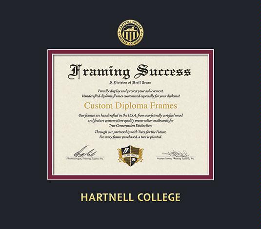 Hartnell College Diploma Frame with Black and Maroon Double Mat and Gold Embossing