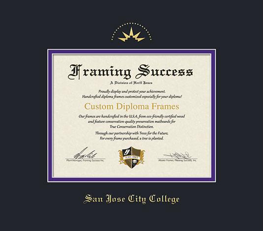 San Jose City College Diploma Frame with Black and Purple Double Mat and Gold Embossing