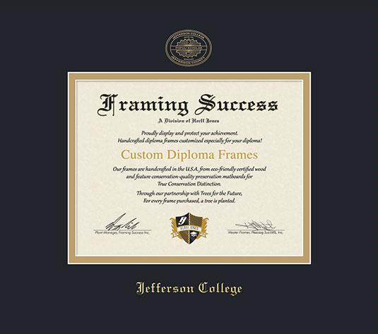 Jefferson College Diploma Frame with Black and Gold Double Mat and Gold Embossing
