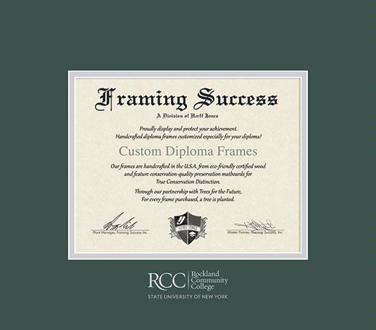 Rockland Community College Diploma Frame with Green and Silver Double Mat and Silver Embossing