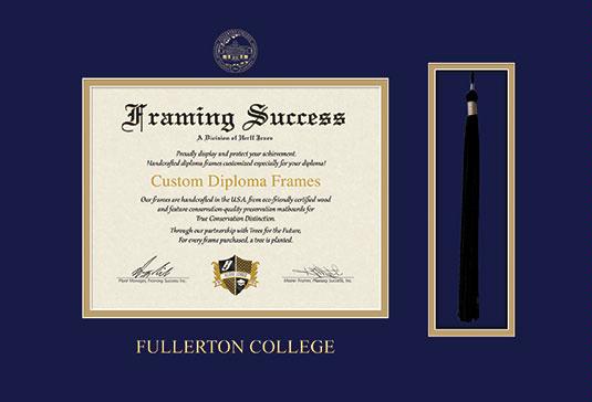 Fullerton College Diploma Frame with Tassel Cut-out and Navy Blue and Gold Double Mat and Gold Embossing