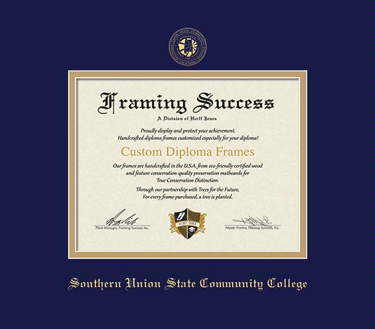 Southern Union State Community College Diploma (2022 to Present) Frame with Navy Blue and Gold Double Mat and Gold Embossing