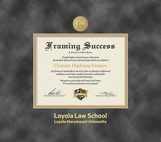Loyola Law School Diploma - Law (2020 to Present) Frame with Medallion and Grey Suede and Gold Double Mat and Gold Embossing