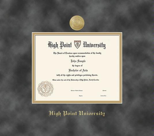 High Point University Diploma - BA Frame with Medallion and Grey Suede and Gold Double Mat and Gold Embossing