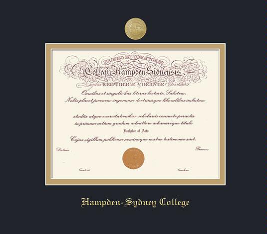 Hampden-Sydney College Diploma (2001 to Present) Frame with Medallion and Black and Gold Double Mat and Gold Embossing