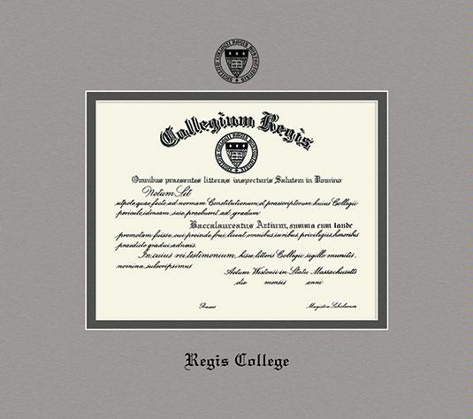 Regis College Diploma - Assoc/BA/MA Frame with Paloma and Moonrock Double Mat and Black Embossing