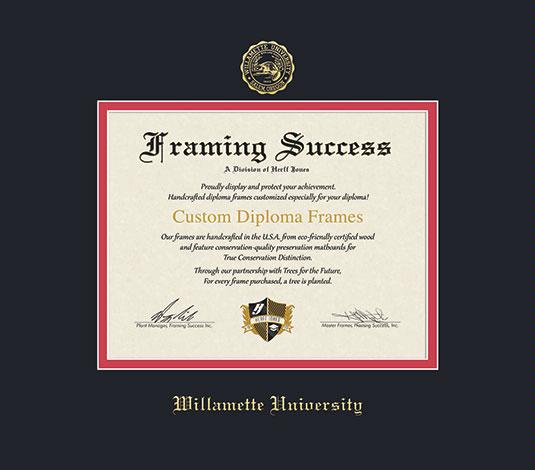 Willamette University Diploma - MA Frame with Black and Red Double Mat and Gold Embossing