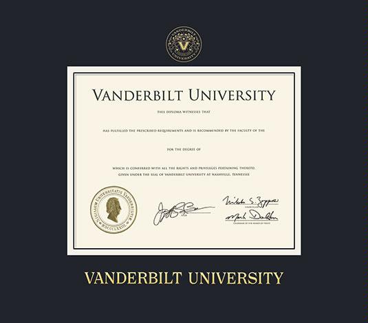Vanderbilt University Diploma - PhD/EdD/MD/Law (7/22 to Present) Frame with Black and Cream with Black Core Double Mat and Gold Embossing