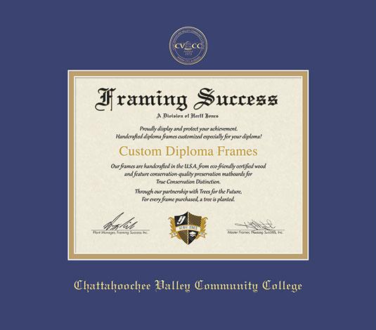 Chattahoochee Valley Community College Diploma Frame with Royal Blue and Gold Double Mat and Gold Embossing