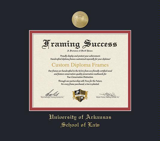 University of Arkansas Diploma - Law (7/21 to Present) Frame with Medallion and Black and Red Double Mat and Gold Embossing