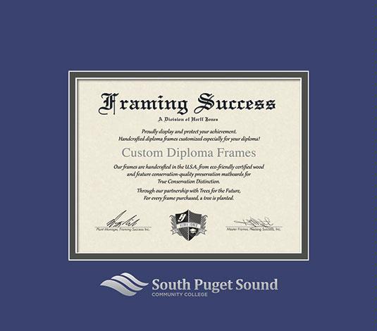 South Puget Sound Community College Diploma Frame with Royal Blue and Moonrock Double Mat and Silver Embossing