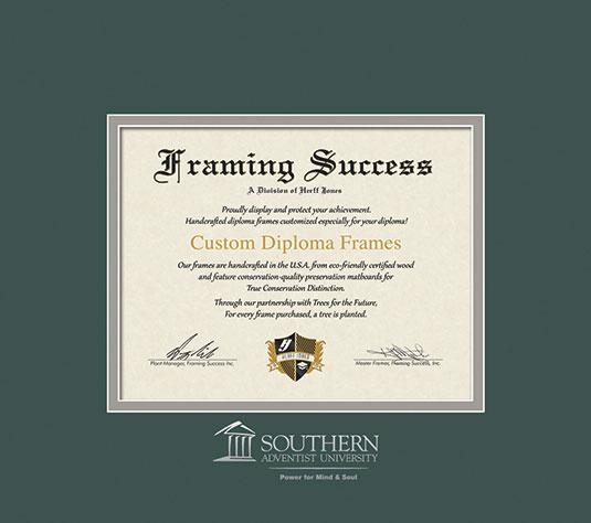 Southern Adventist University Diploma - Assoc/BA Frame with Green and Paloma Double Mat and Silver Embossing
