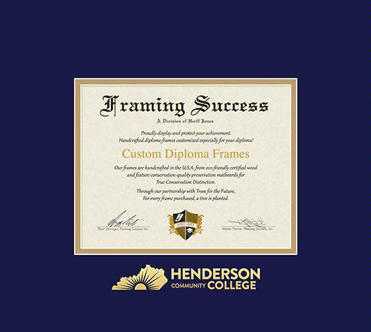 Henderson Community College Diploma Frame with Navy Blue and Gold Double Mat and Gold Embossing