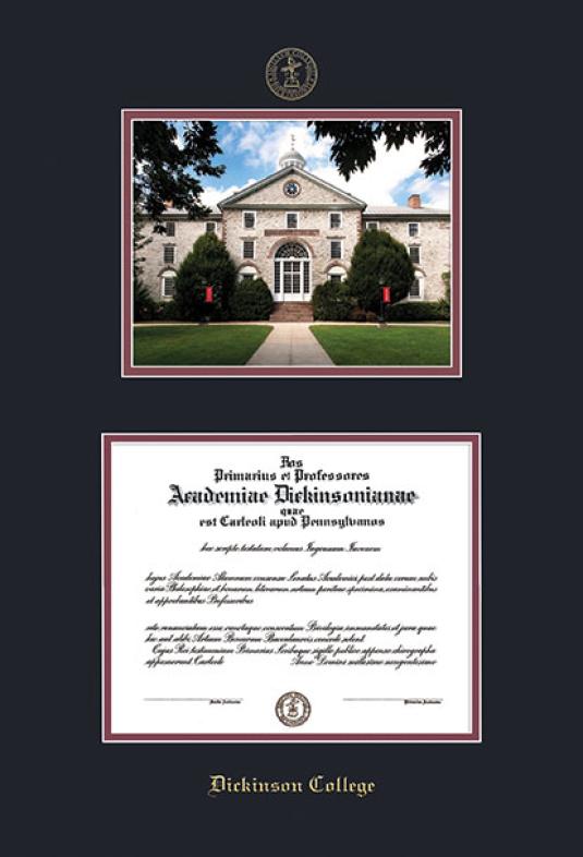 Dickinson College Diploma (9/22 to Present) and Photo Frame with Black and Maroon Double Mat and Gold Embossing