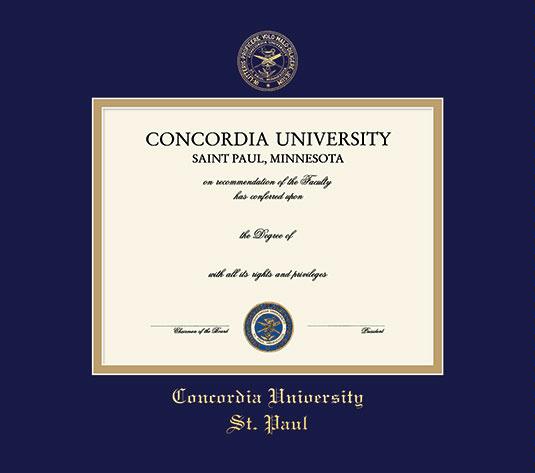 Concordia University (MN) Diploma - BA (2013 to Present) and MA Frame with Navy Blue and Gold Double Mat and Gold Embossing