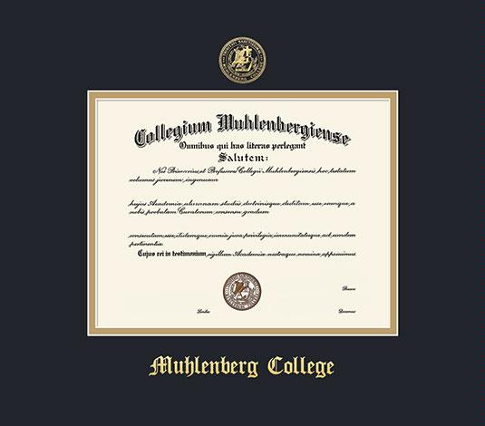 Muhlenberg College Diploma Frame with Black and Gold Double Mat and Gold Embossing