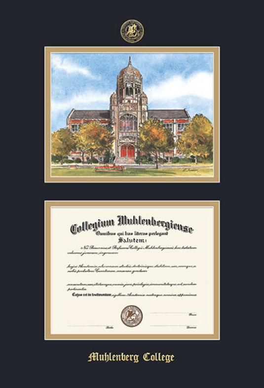 Muhlenberg College Diploma and Litho Frame with Black and Gold Double Mat and Gold Embossing
