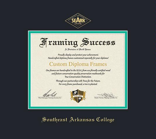 Southeast Arkansas College Diploma Frame with Black and Teal Double Mat and Gold Embossing