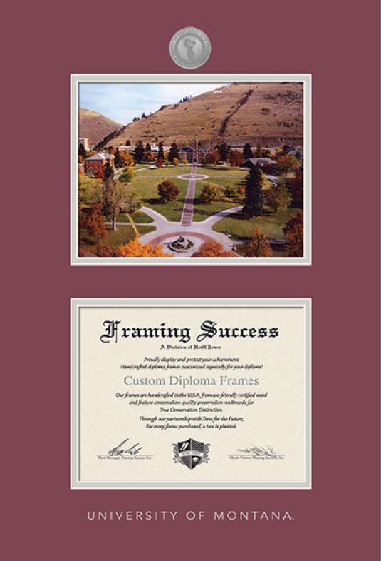 University of Montana Diploma - BA/MA/PhD (2018 to Present) and Photo Frame with Medallion and Maroon and Gray Double Mat and Silver Embossing