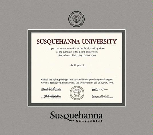 Susquehanna University Diploma (6/09 to Present) Frame with Paloma and Moonrock Double Mat and Black Embossing
