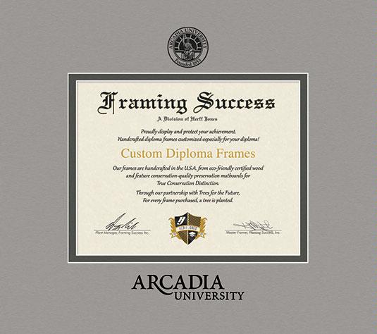 Arcadia University Diploma Frame with Paloma and Moonrock Double Mat and Black Embossing