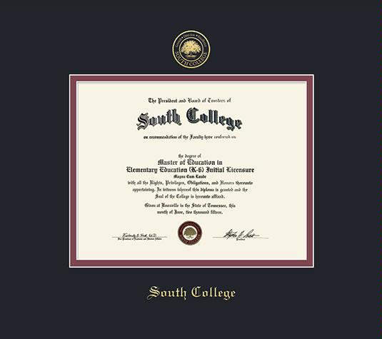 South College Diploma (9/22 to Present) Frame with Black and Maroon Double Mat and Gold Embossing