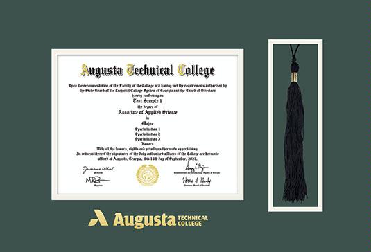 Augusta Technical College Diploma (2022 to Present) Frame with Tassel Cut-out and Green and Cream Double Mat and Gold Embossing