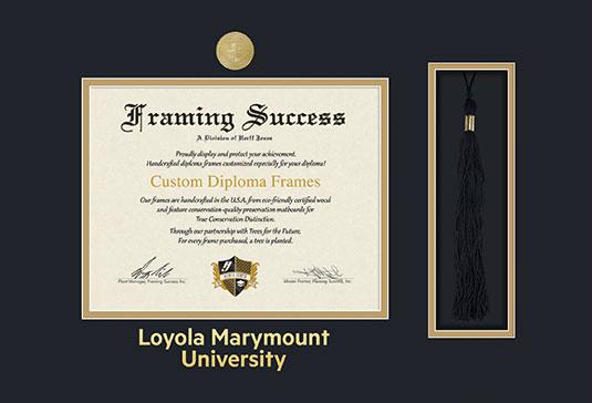 Loyola Marymount University Diploma (2020 to Present) Frame with Medallion and Tassel Cut-out and Black and Gold Double Mat and Gold Embossing