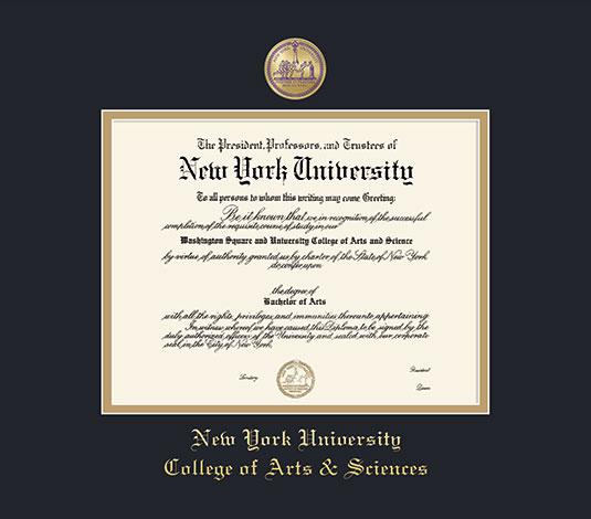 New York University Diploma - College of Arts & Sciences Frame with Medallion and Black and Gold Double Mat and Gold Embossing