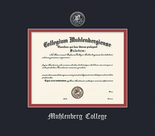 Muhlenberg College Diploma Frame with Black and Red Double Mat and Silver Embossing