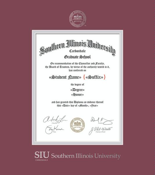 Southern Illinois University Carbondale Diploma - DMSc (8/23 to 8/24) Frame with Maroon and Silver Double Mat and Silver Embossing
