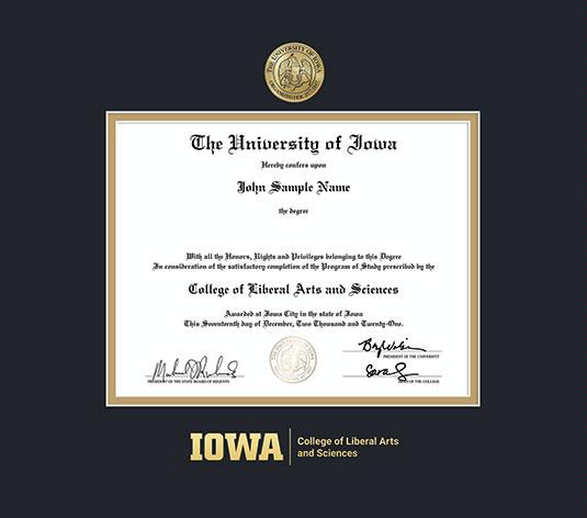 The University of Iowa Diploma - Liberal Arts & Sciences Frame with Medallion and Black and Gold Double Mat and Gold Embossing