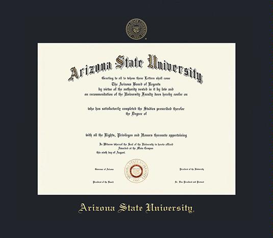 Arizona State University Diploma - BA/MA Frame with Dark Black Mat and Gold Embossing