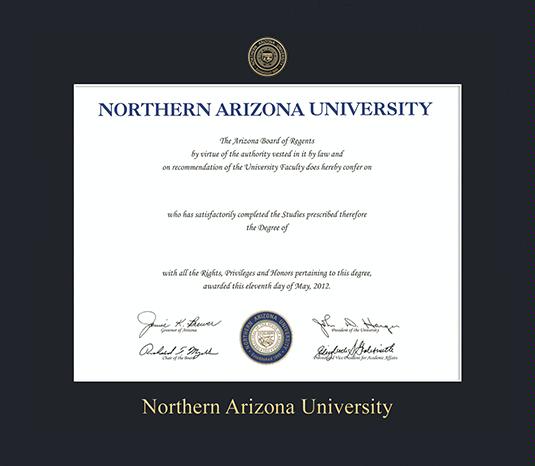 Northern Arizona University Diploma (9/12 to Present) Frame with Dark Black Mat and Gold Embossing