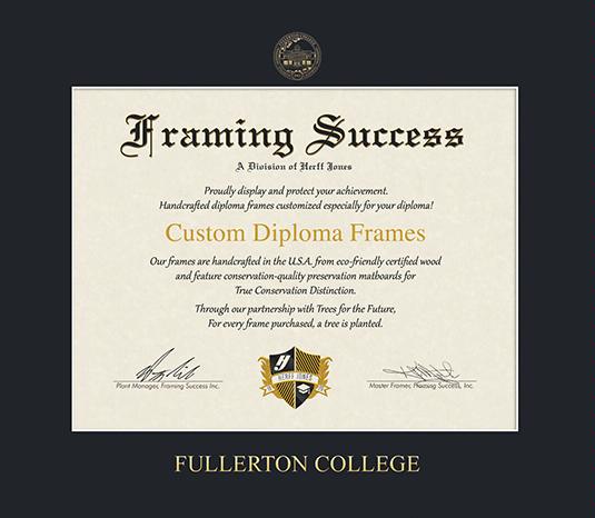 Fullerton College Diploma Frame with Dark Black Mat and Gold Embossing