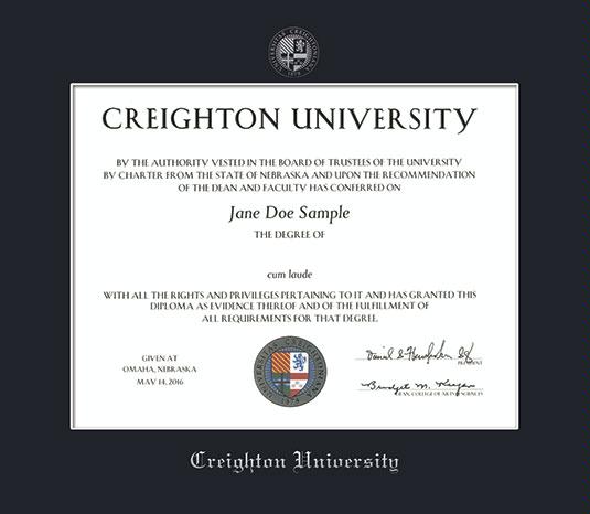 Creighton University Diploma - BA/MA (7/14 to Present) Frame with Dark Black Mat and Silver Embossing