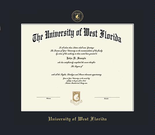 University of West Florida Diploma (7/18 to Present) Frame with Dark Black Mat and Gold Embossing