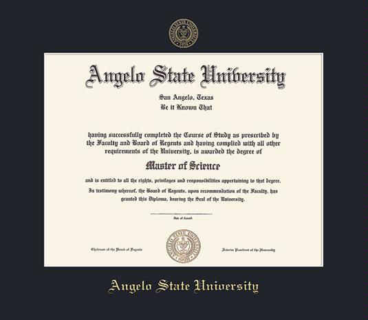 Angelo State University Diploma (12/14 to Present) Frame with Dark Black Mat and Gold Embossing
