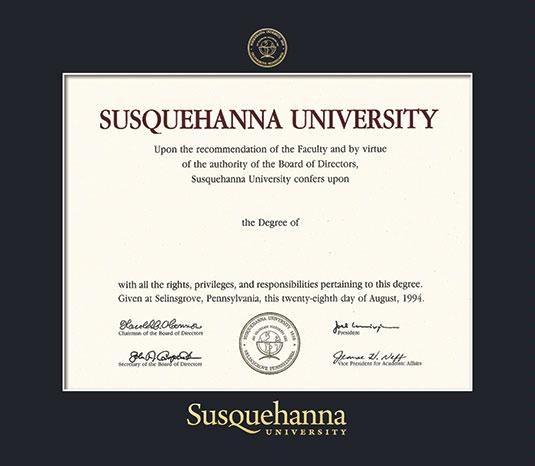 Susquehanna University Diploma Frame with Dark Black Mat and Gold Embossing
